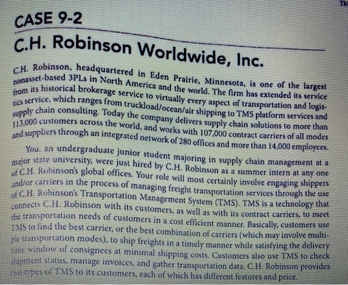 Case 9 2 C H Robinson Worldwide Inc Do You Think Chegg Com